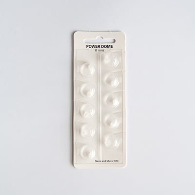 Bernafon RITE Power Dome is a hearing aid dome accessory for Bernafon receiver-in-the-ear (RITE) models with external receivers. Size: 6 mm. Type: Power dome (double-flange). Material: transparent silicone. Pack size: 10 domes. Compatibility: Bernafon hearing aids using NoWax or ProWax wax filters, including Bernafon Nano RITE and Bernafon Micro RITE.